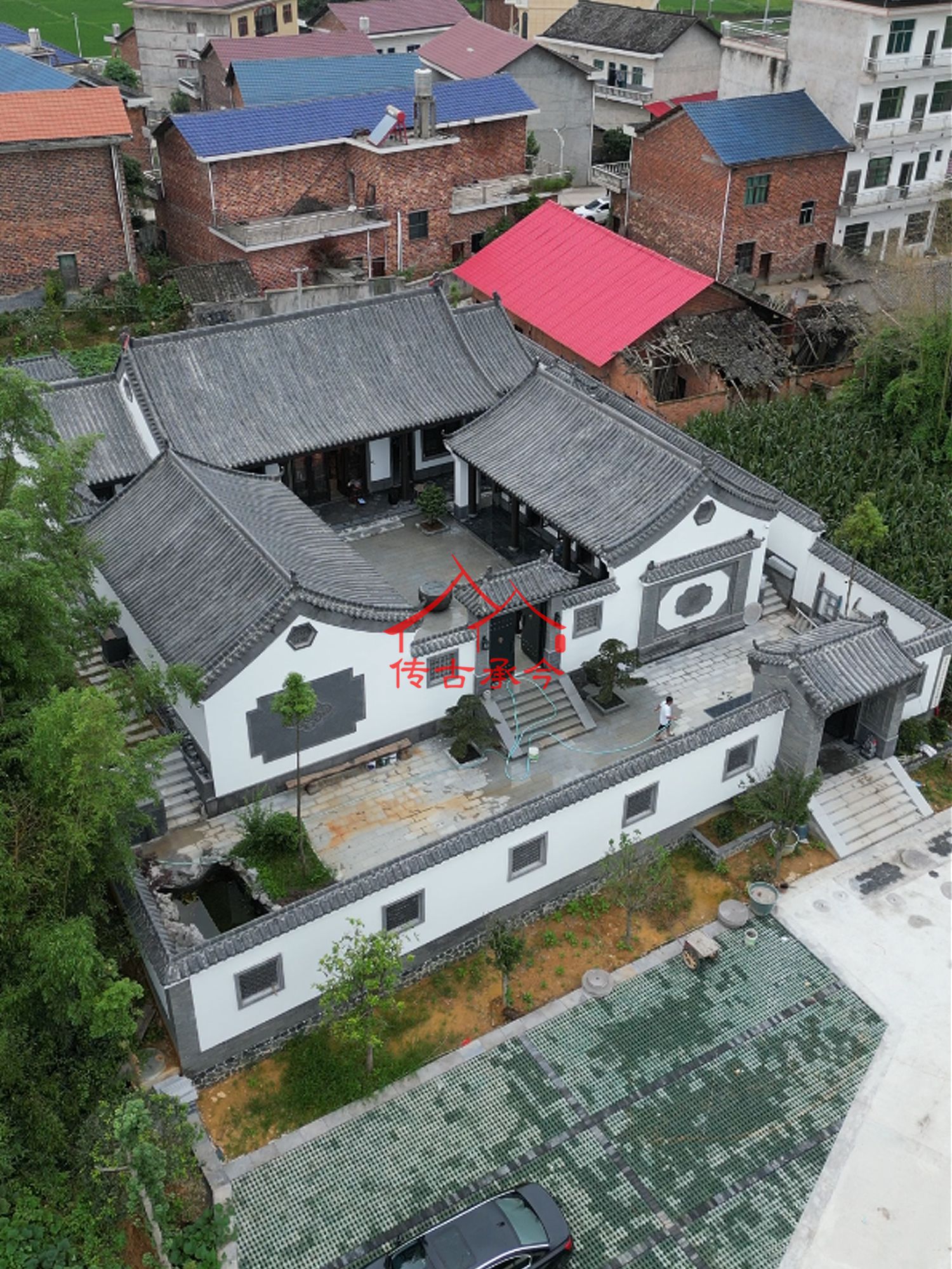 湖南邵陽新中式農(nóng)村別墅鄉(xiāng)村仿古庭院中式自建房四合院白墻灰瓦庭院