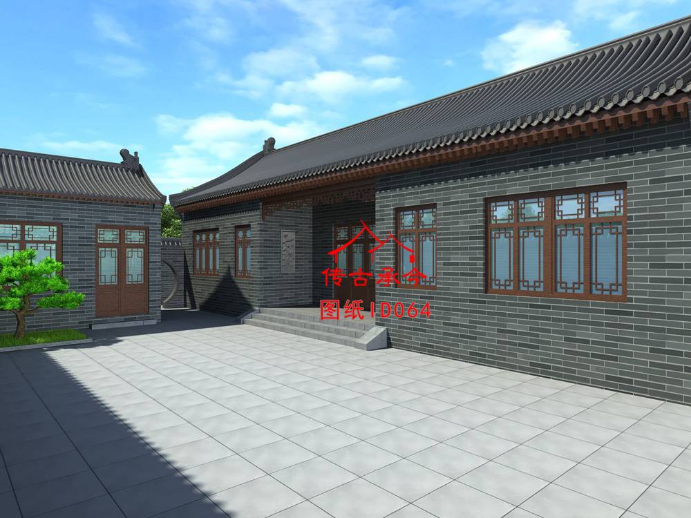 編號064:21*17米京派合院一進(jìn)一層自建四合院全套施工圖紙?jiān)O(shè)計(jì)圖紙