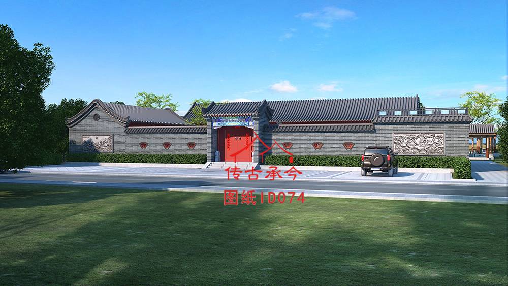 編號(hào)074:33.2*20.2米青磚風(fēng)格帶露臺(tái)一進(jìn)一層自建四合院全套施工圖紙?jiān)O(shè)計(jì)圖紙