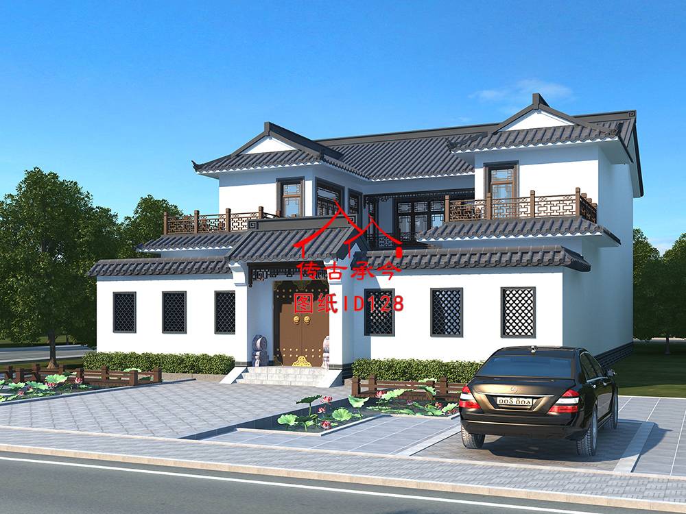 編號(hào)128:14.2*20.2米二層新中式帶露臺(tái)三合院