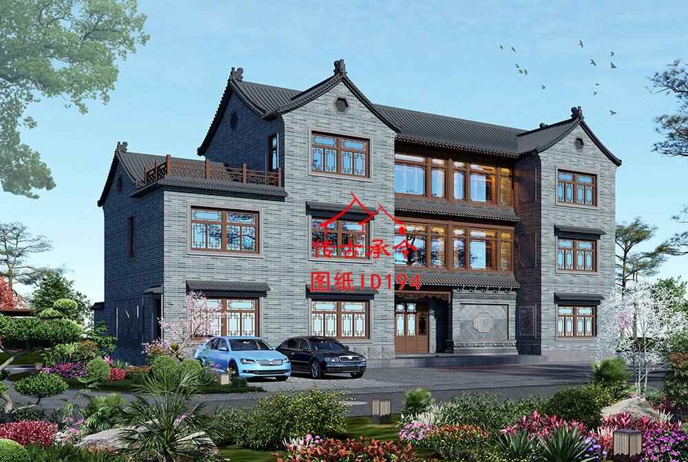 編號194:26.3*8.9米三層青磚聯(lián)體三合院全套施工圖紙?jiān)O(shè)計(jì)圖紙