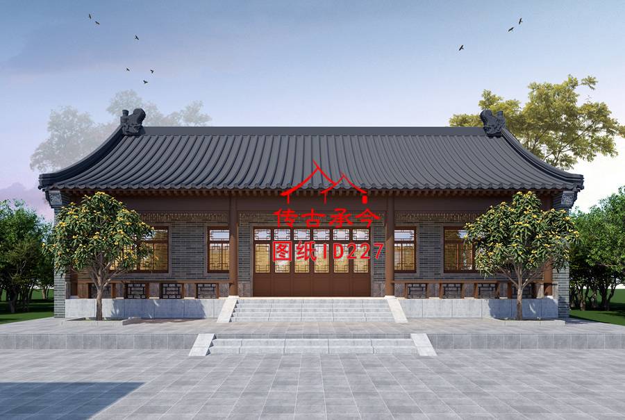 編號(hào)227:17.3*16.5米獨(dú)棟青磚三間仿古建筑全套施工圖紙?jiān)O(shè)計(jì)圖紙