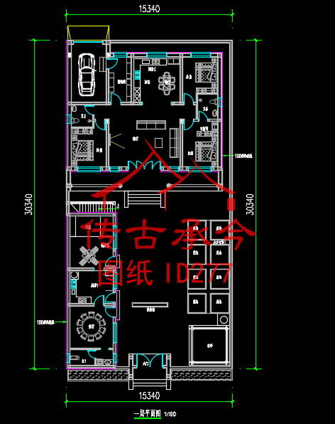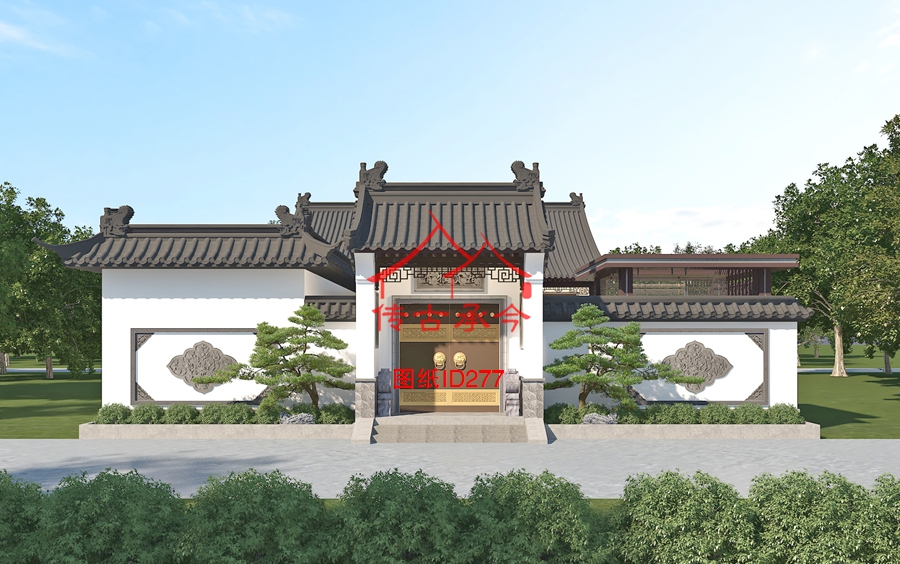 編號(hào)277:15.3*30.3米一層廊式合院全套施工圖紙?jiān)O(shè)計(jì)圖紙