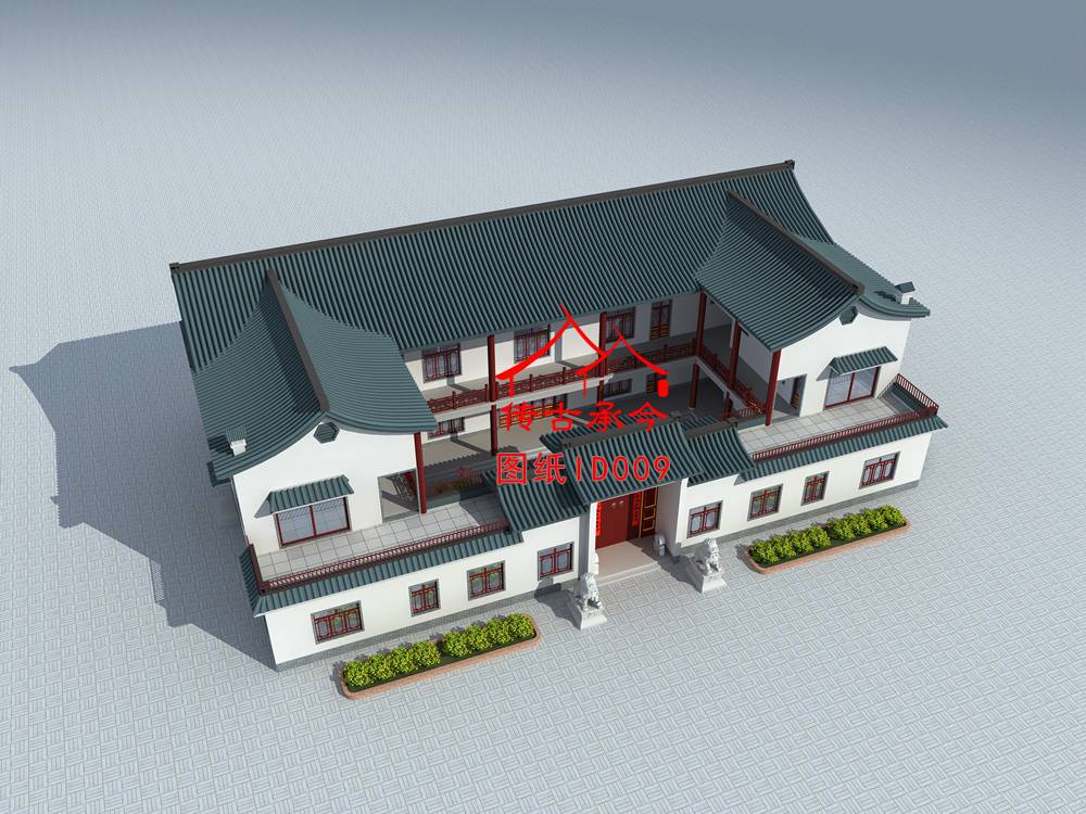 編號009:37.6*23.3米二層白墻新中式四合院全套施工圖紙