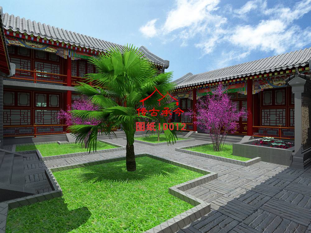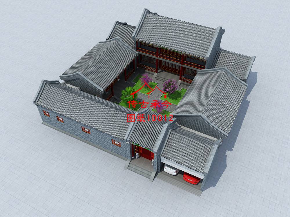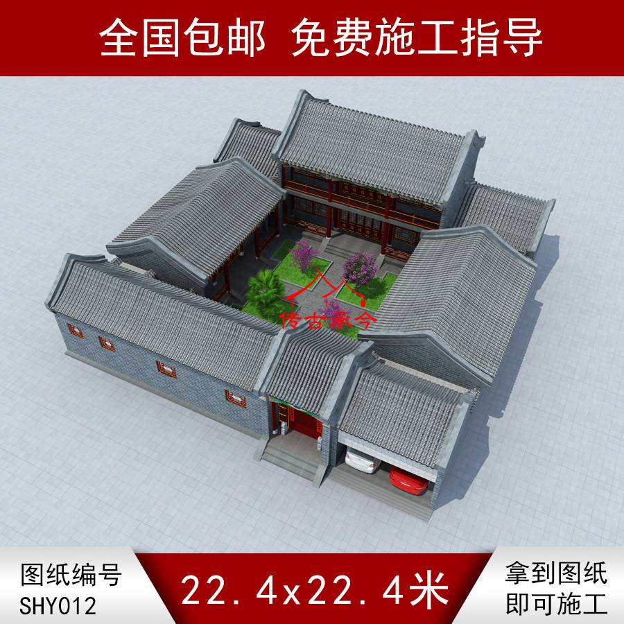 編號(hào)012:22.4*22.4米標(biāo)準(zhǔn)正方形二層四合院全套施工圖紙