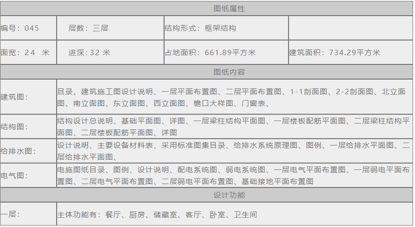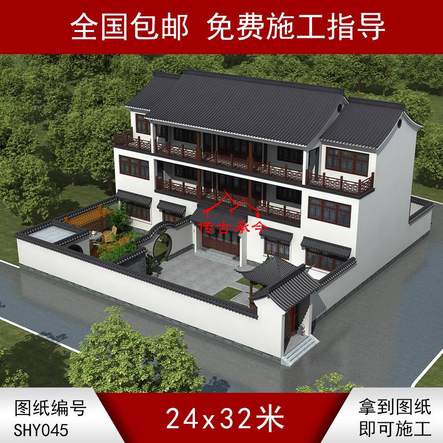 編號045:24*32米一進三層中式獨棟全套施工圖