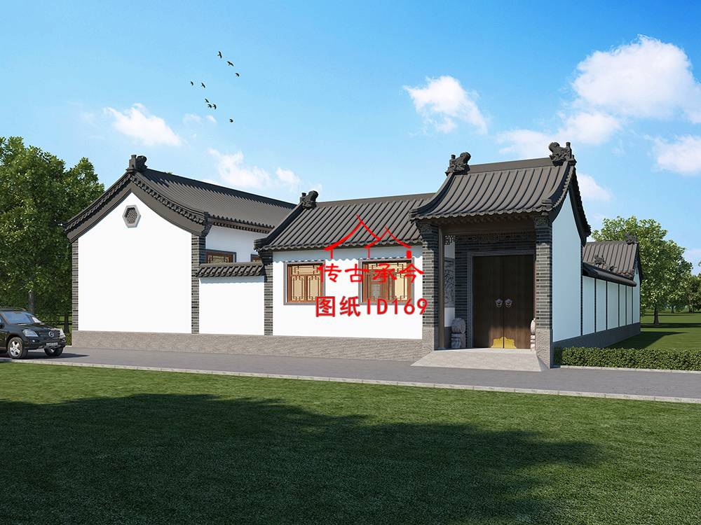 編號(hào)169:27.2*19.9米白墻青磚柱三合院全套施工圖紙?jiān)O(shè)計(jì)圖紙