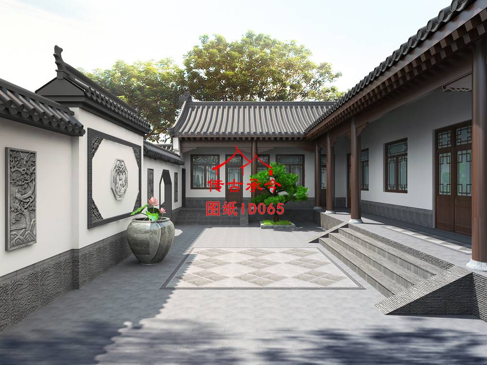 編號(hào)065:34.2*26米白墻灰瓦兩進(jìn)一層自建四合院全套施工圖紙?jiān)O(shè)計(jì)圖紙