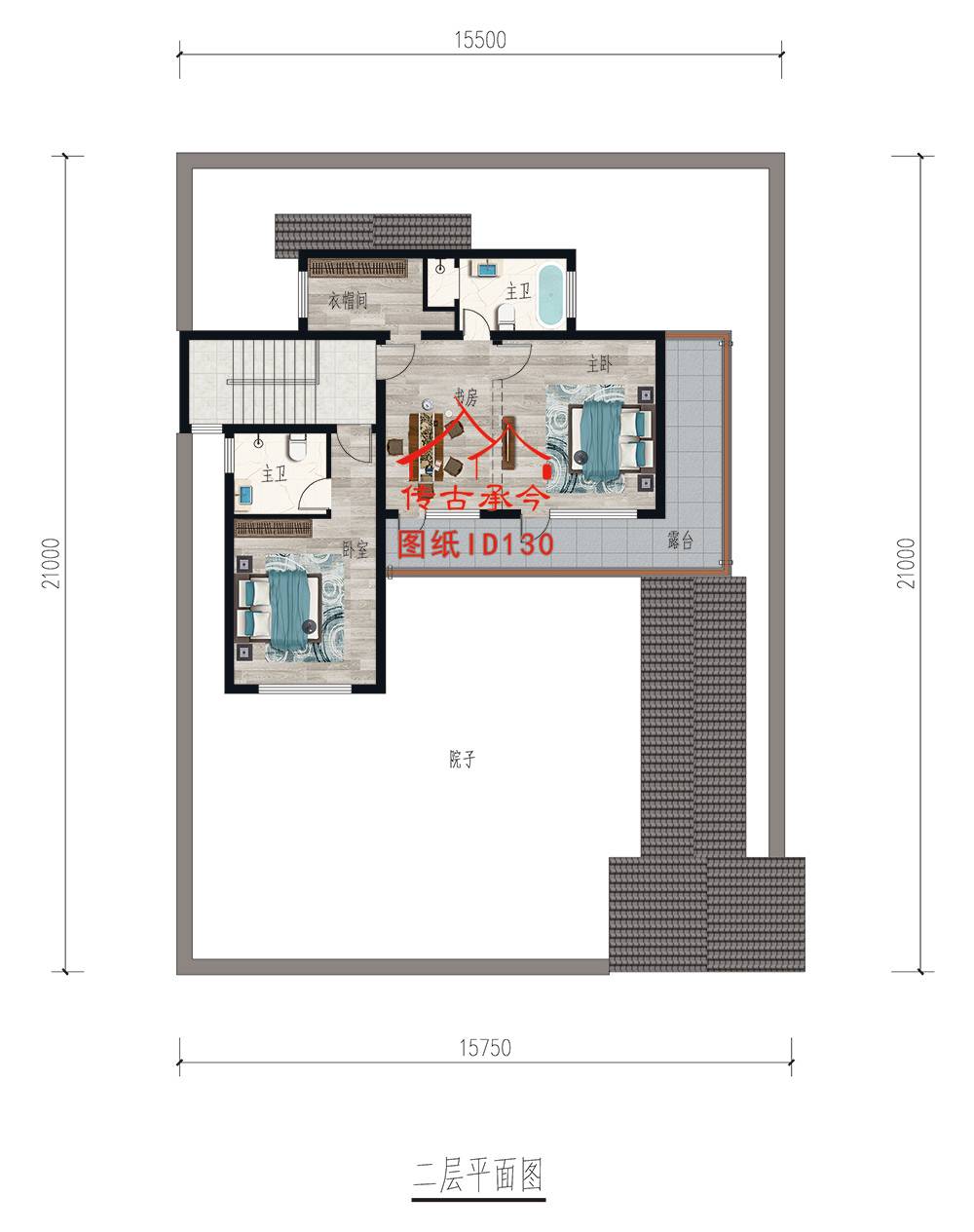編號(hào)130:16.3*21米 二層蘇派歇山頂合院