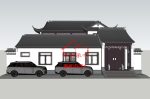 合院鳥瞰效果圖蘇式二層建筑 鏤空影壁蘇式建筑二層翹腳歇山效果圖