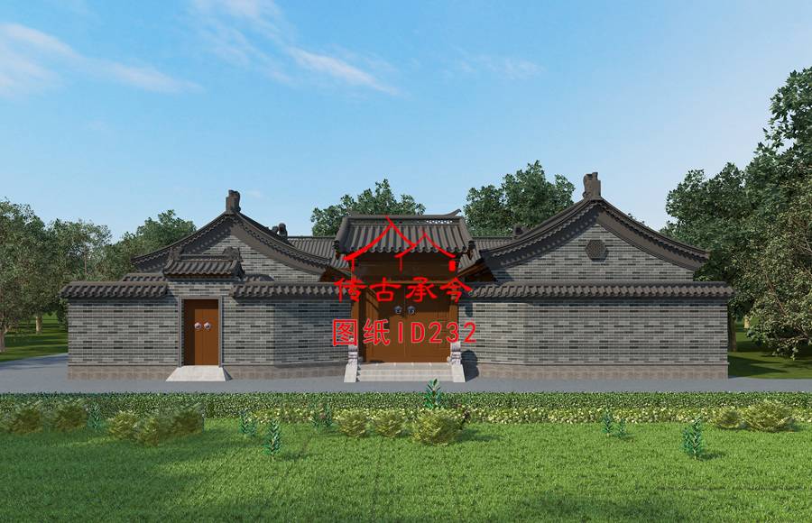 編號(hào)232:21.7*27.1米一層傳統(tǒng)青磚古建四合院全套施工圖紙?jiān)O(shè)計(jì)圖紙