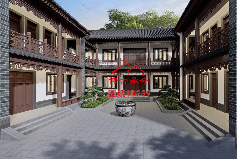 編號(hào)239:25.2*32.7米二層新中式白墻青磚柱帶后院三合院全套施工圖紙?jiān)O(shè)計(jì)圖紙