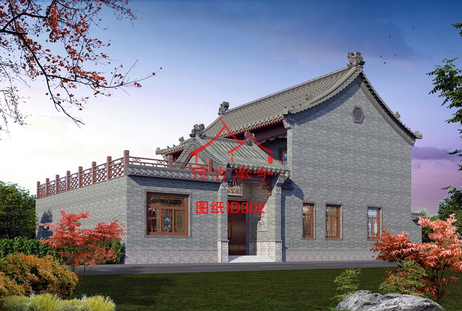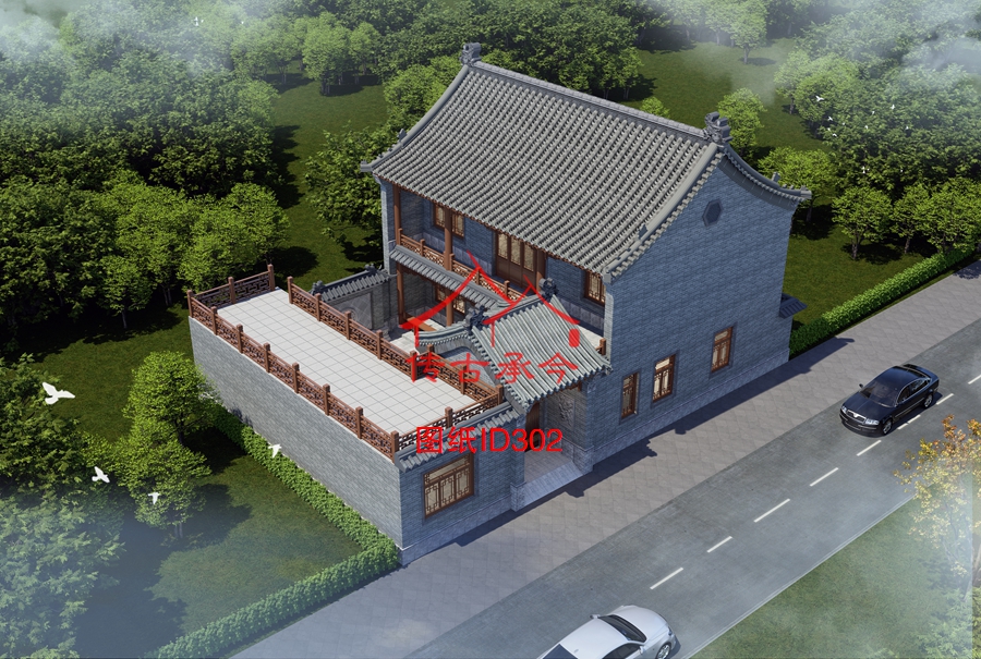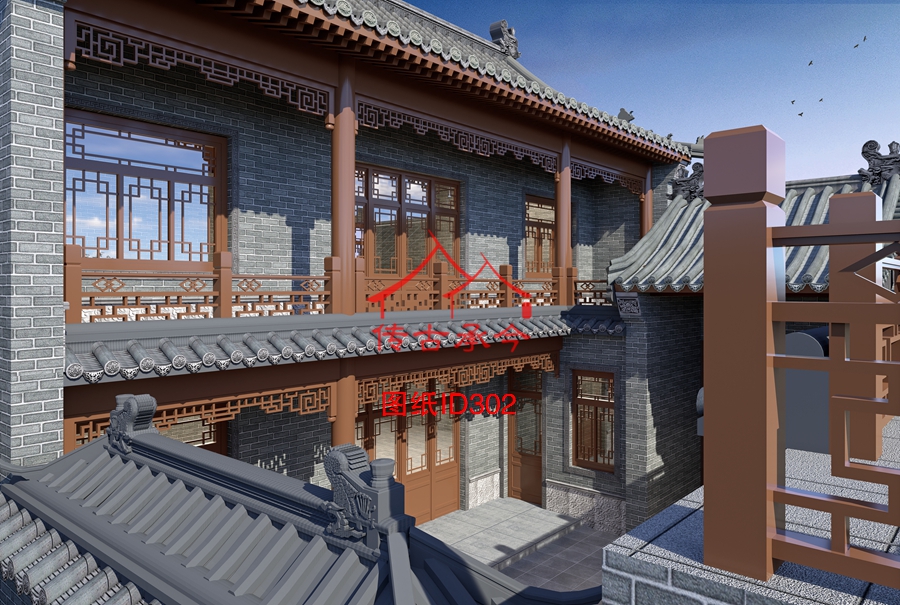 編號302:13.2*19.5米二層帶平頂合院全套施工圖紙設計圖紙