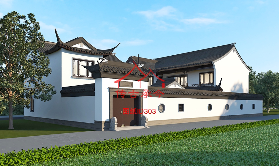 編號303:18.2*32.2米二層蘇派合院全套施工圖紙設(shè)計圖紙