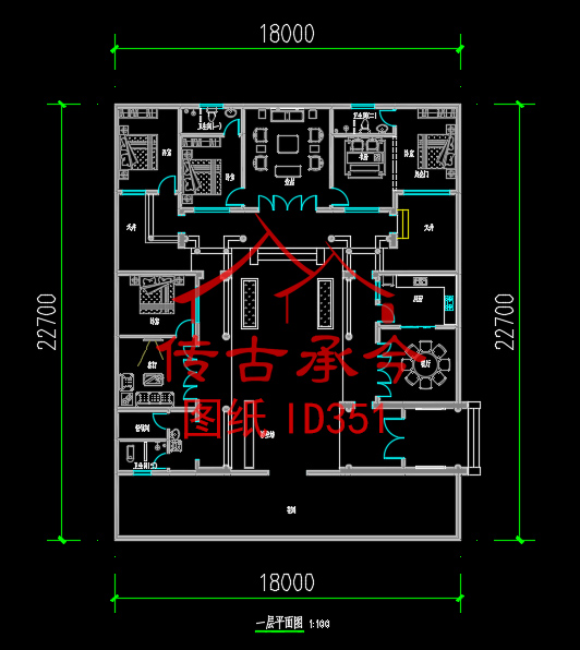 編號(hào)351:18*22.5米四合院全套施工圖紙?jiān)O(shè)計(jì)圖紙 自建房圖紙 提供材料及技術(shù)