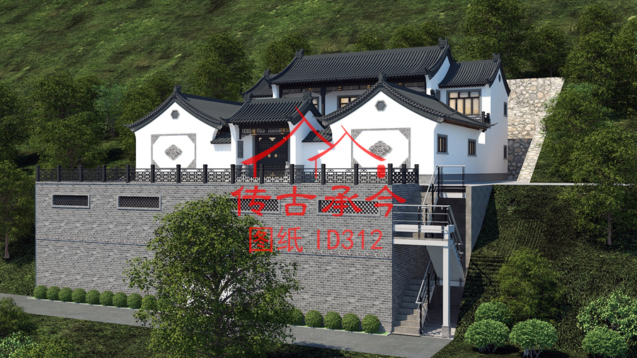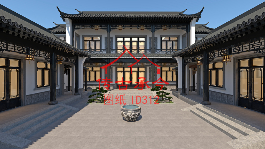 編號(hào)312:21.4*30.8米二層架高帶車庫(kù)合院全套施工圖紙?jiān)O(shè)計(jì)圖紙