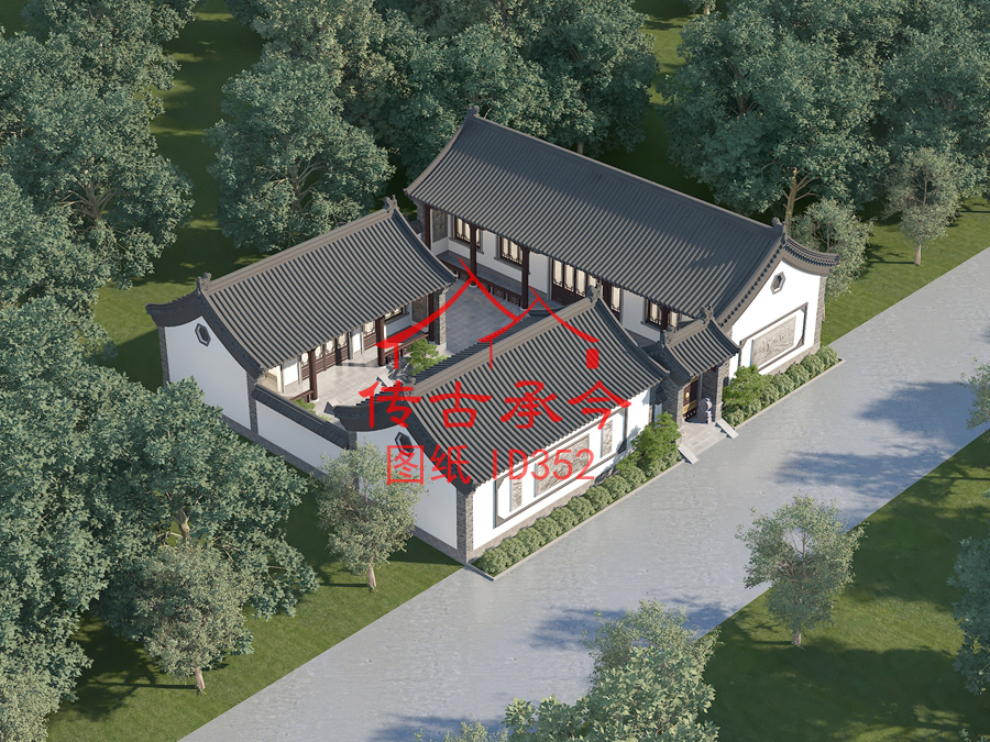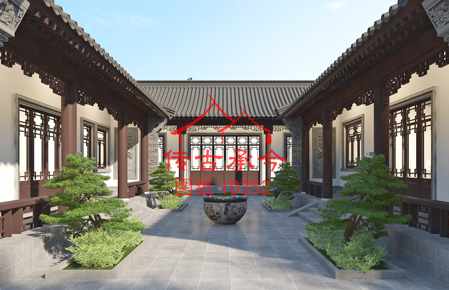 編號352:17*21米四合院全套施工圖紙設(shè)計圖紙 自建房圖紙 提供材料及技術(shù)
