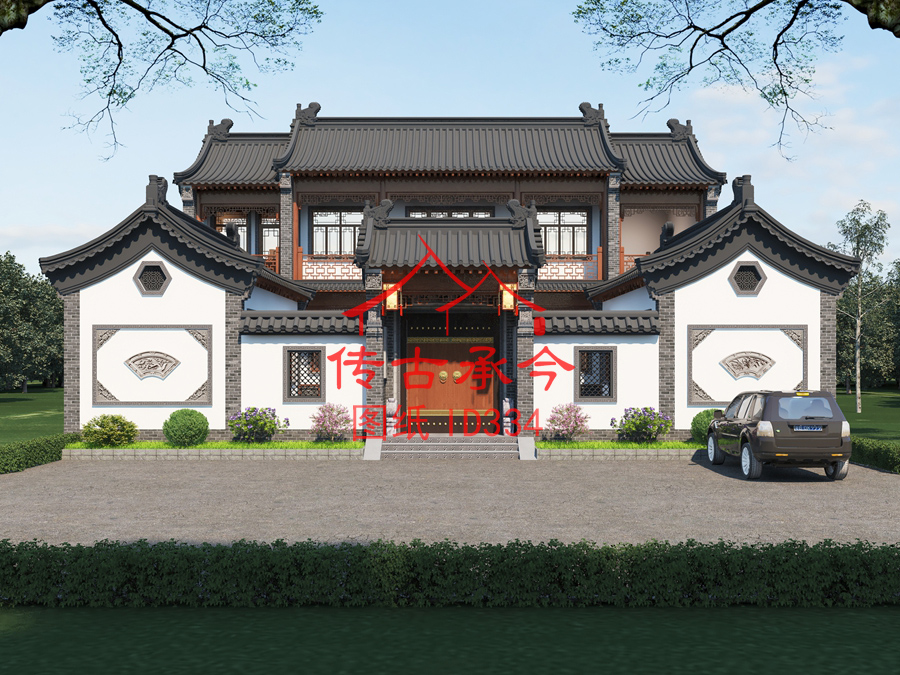 編號(hào)334:18*18米方形宅基地中式三合院全套施工圖紙?jiān)O(shè)計(jì)圖紙