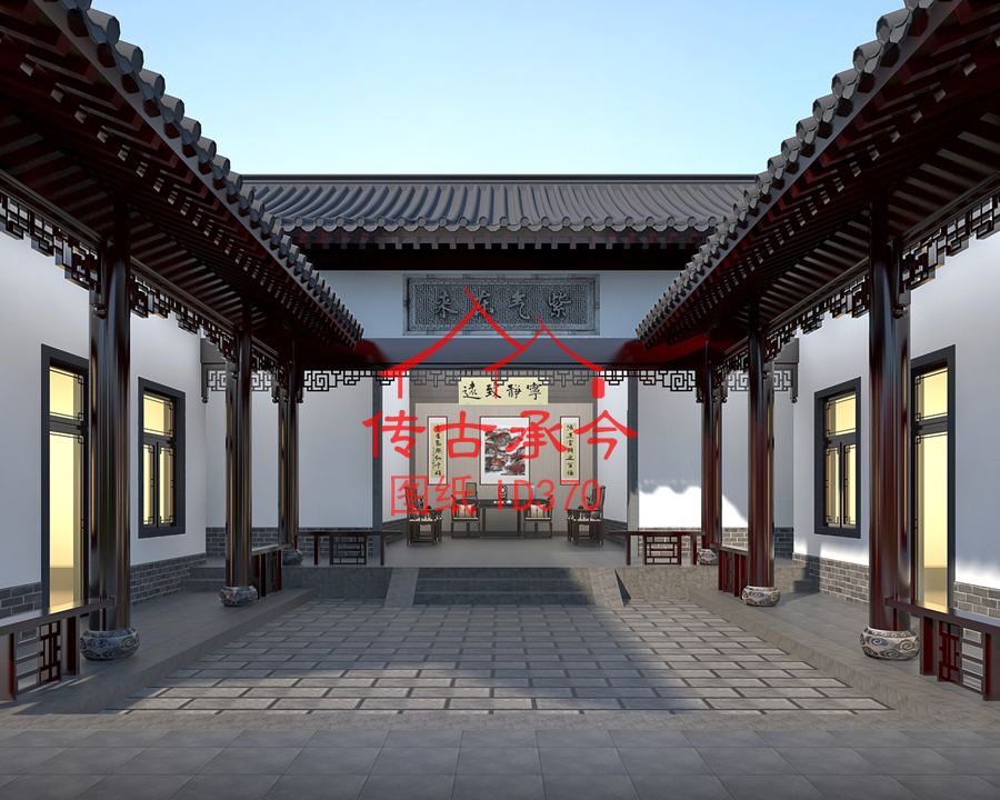 編號(hào)370:15.3*23.2米四合院白墻灰瓦新中式風(fēng)格全套施工圖紙?jiān)O(shè)計(jì)圖紙