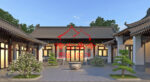 新中式風格三合院平面布局圖 新中式風格三合院鳥瞰效果圖 白墻灰瓦風格三合院效果圖 三合院大門效果圖 三合院庭院效果圖 三合院主房一層效果圖