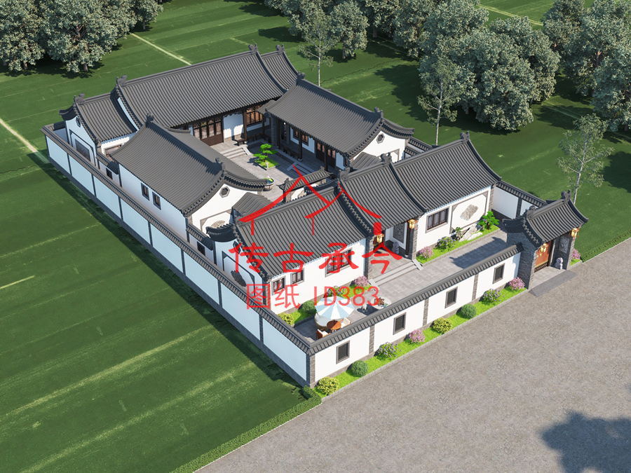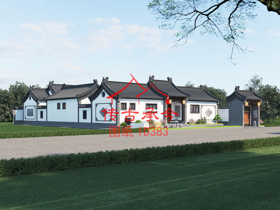 編號(hào)383:24*38.7米白墻灰瓦新中式四合院全套施工圖紙?jiān)O(shè)計(jì)圖紙