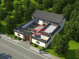 編號389:15.5*18.2米白墻灰瓦新中式風(fēng)格三合院全套施工圖紙?jiān)O(shè)計(jì)圖紙