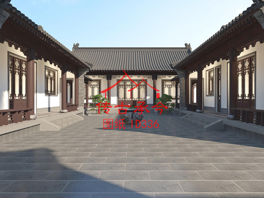 編號(hào)336:22.5*43.4米帶花園二進(jìn)三合院全套施工圖紙?jiān)O(shè)計(jì)圖紙