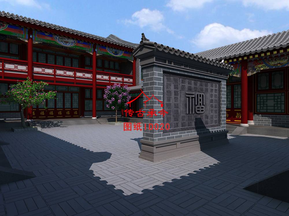 編號(hào)020:22*26.6米二層回廊三合院全套施工圖紙